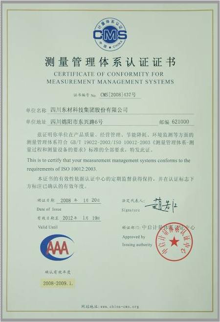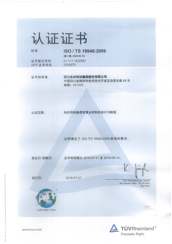 東材科技在國內同行業企業當中率先通過國際ISO9001的質量體系認證,通過ISO10012國際計量體系、ISO14001環境管理認證體系、OHSAS18001職業健康安全體系、GBT 29490知識產權管理體系、GBT23331能源管理體系認證企業、IATF16949汽車質量管理體系認證,不僅使公司產品質量保障體系達到國際化的新標準,而且為產品質量的穩定提供了強有力的保障。